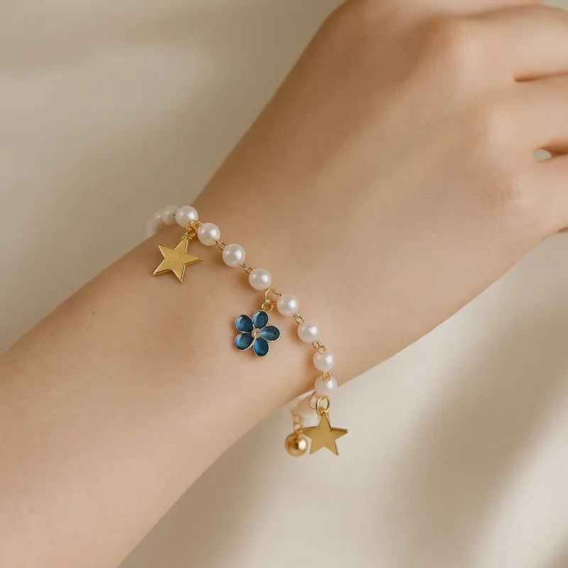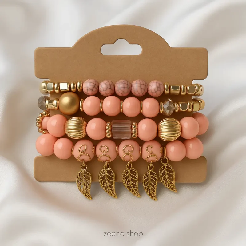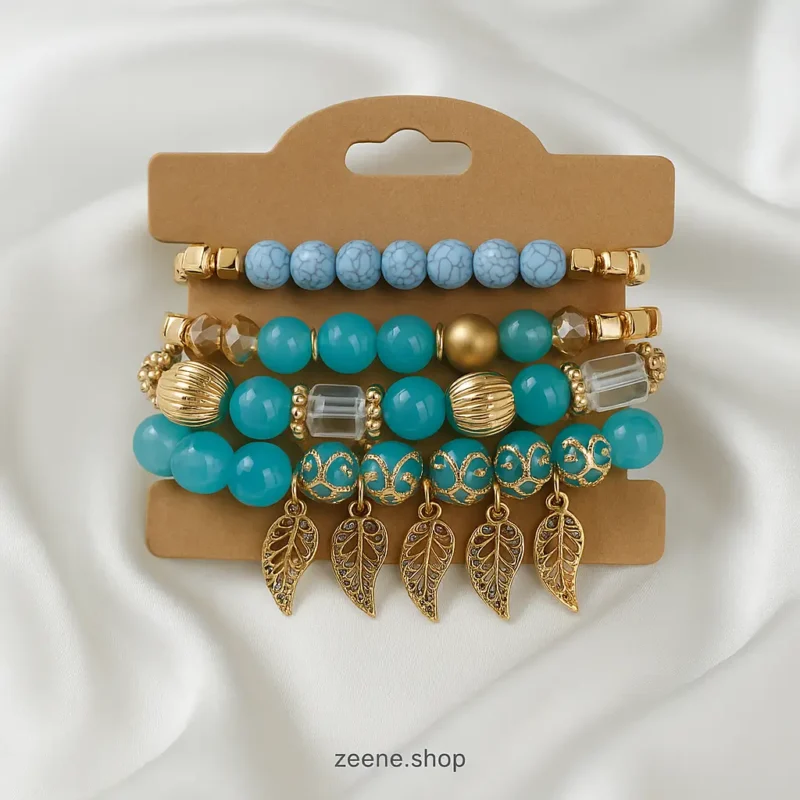Elegant Turquoise Beaded Charm Bracelets – Set of 4