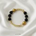 Discover timeless style with this elegant black beaded bracelet, adorned with intricate gold filigree leaf charms. Perfect for adding a touch of sophistication to any outfit. Shop now at zeene.shop
