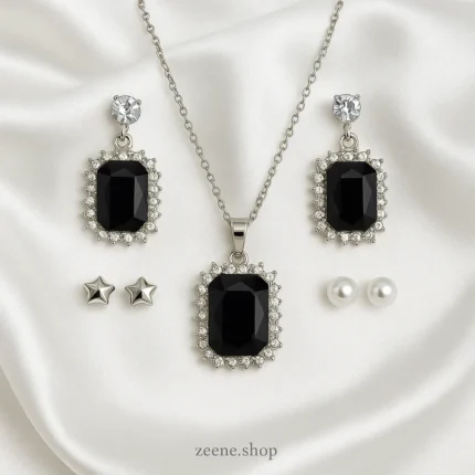 Discover elegance with the Gold & Diamond Charm Jewelry Set. This luxurious collection includes a sparkling necklace, chic earrings, and sophisticated pearl studs. Perfect for any occasion, this set adds charm and shine to your style. Available now at Zeené.