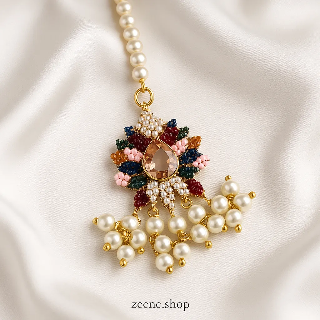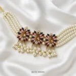 A luxurious choker featuring pearls, kundan stones, and floral accents. Ideal for bridal and formal looks.